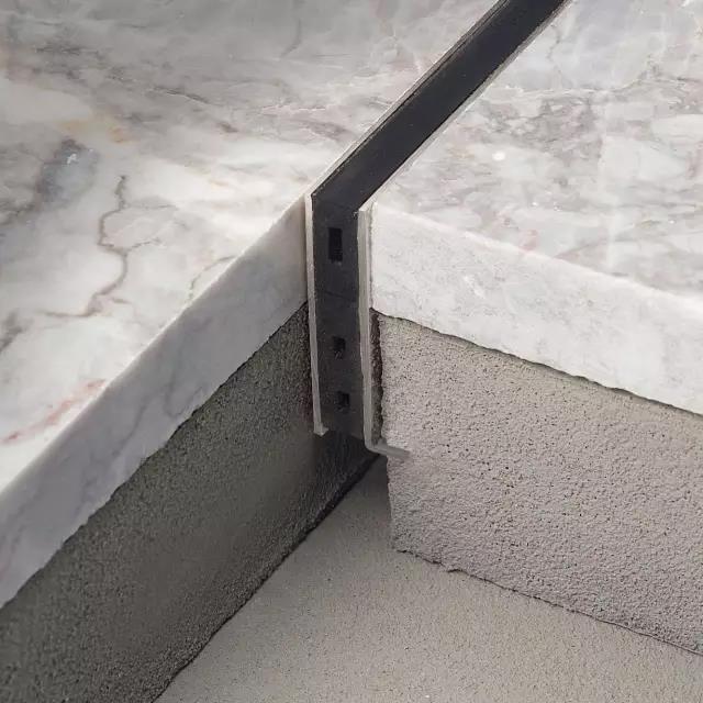 砖在阴角阳角收口时,通常接纳45°角对拼的方法。这样不但容易崩边、开裂,还保存一定的清静隐患。而圆润的金属收边条不但增强了装饰效果,也一并消除了这些问题。