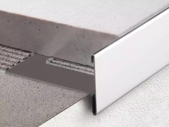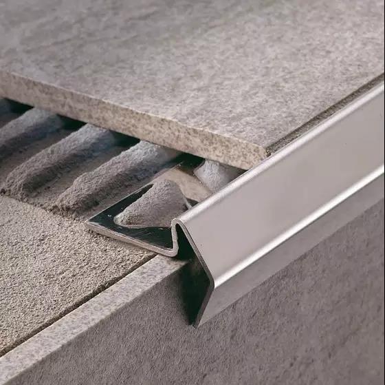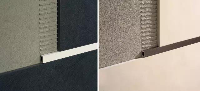 砖在阴角阳角收口时,通常接纳45°角对拼的方法。这样不但容易崩边、开裂,还保存一定的清静隐患。而圆润的金属收边条不但增强了装饰效果,也一并消除了这些问题。