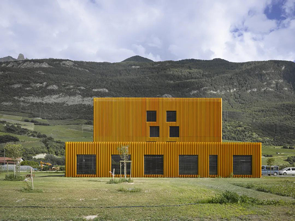 Á¢ÃæÉϵĴ󴰻§ÓªÔì³ö¼ÍÂɵĽÚ×࣬´°»§µÄÆô³Ý²¿·ÖÊܵ½ÍâÁ¢ÃæÁýÕֵĴ©¿×½ðÊô±íƤµÄ±£»¤¡£Æô³Ý²¿·Ö´ÓÒ»²ãµ½ÁíÒ»²ã½»Á÷λÖã¬ÔÚ´°»§´©¿×Öб¬·¢¾ªÈ˵ÄЧ¹û——ÕâÖÖЧ¹ûÔÚÍíÉÏ¿ªµÆÊ±ÏûÊÅ¡£°ü²ãµÄÉîÂÞÎÆºÍÍÉ«µ÷Ϊ¸ÃÉèʩעÈëÁËÆæÒìµÄ¸öÐÔ£¬¹¤Òµ½ðÊôµÄʹÓÃÊǶÔɽ¹ÈÖÐË®¹û»ú¿âµÄÖ¾´¡£
