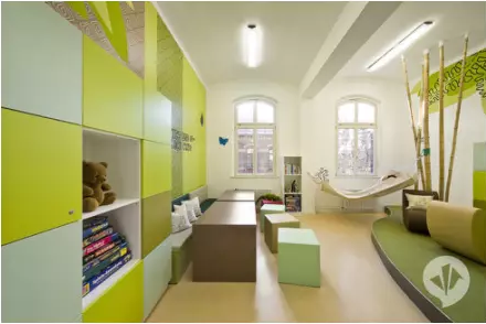 ③诊疗室则相宜用蓝色等使人感应清静的颜色作为配景致调,让患儿平静下来,消除主要感;同时适当用黄色、粉色等暖色调来装饰,起到辅助治疗的作用。
