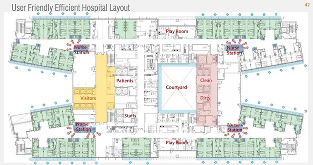 ÀýÈçÔÚB×ùµÄ²¡·¿ÇøÂ¥²ãµÄÉè¼ÆÖУ¬·Ã¿Íͨ¹ý·Ã¿ÍµçÌݾÖ÷Èë¿Ú½øÈ벡·¿Çø£¬Ö°Ô±Ê¹ÓÃÖ°Ô±»ò»¼ÕßµçÌÝÎÞÐè¾Óɹ«¹²ÇøÓò¼´¿É½øÈ벡·¿Çø£¬×èÖ¹ÁËÈËÁ÷Öв¡»¼Óë·Ã¿ÍÖ®¼äµÄ¶þ´ÎѬȾ£»Á½²àµÄ²¡·¿Çø¶¼ÓÐͨµÀÖ±½ÓÅþÁ¬ÖÁ»õÎïµçÌÝ£¬×èÖ¹ÁËÈËÁ÷Óë³µÁ÷µÄÖØ¸´»ìÔÓ¡£