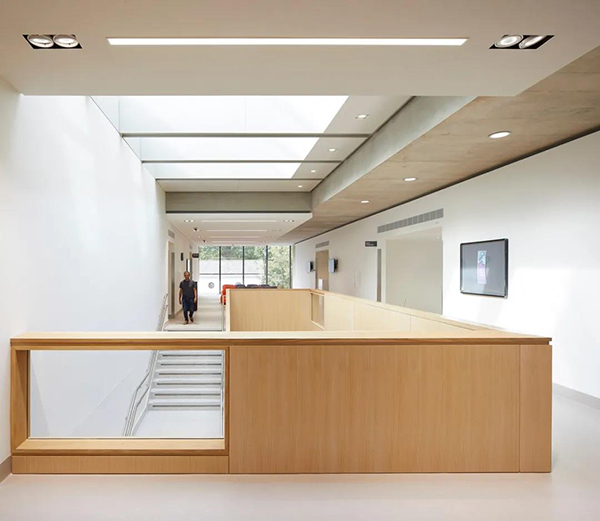 Ñо¿ÖÐÐÄÄÚ²¿Î§ÈÆ×ÅÁ½¸öÅþÁ¬ÔÚÒ»ÆðµÄ“ÐÄÔà”£¨ÃÅÕïÇøÓòºÍÑо¿ÇøÓò£©×éÖ¯£¬Ã¿¸öÇøÓò¶¼¸÷×Ô¿ª³¨ÓÚÃ÷ÁÁµÄÖÐÍ¥¿Õ¼ä¡£ËäÈ»ÁÙ´²ºÍÐ×÷Ñо¿ÇéÐÎÓÐÆäרÃŵÄרҵÁìÓò£¬µ«¸ÃÐÞ½¨Í¨¹ý¿Õ¼ä¡¢¹âÏߺÍÖÊÁÏÌṩÁ˲î±ð¹¦Ð§ºÍÓû§Ö®¼äµÄÎïÀíºÍÊÓ¾õÁªÏµ¡£