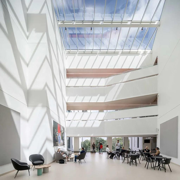 修建基于一个简朴而有用的设计原理:一系列折叠的V型结构,这些结构通过横向毗连捆绑在一起。这种奇异的形状为患者创立了五个休闲中庭以及大型医院的定位点。