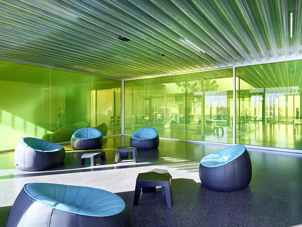 Á¢ÃæÉϵĴ󴰻§ÓªÔì³ö¼ÍÂɵĽÚ×࣬´°»§µÄÆô³Ý²¿·ÖÊܵ½ÍâÁ¢ÃæÁýÕֵĴ©¿×½ðÊô±íƤµÄ±£»¤¡£Æô³Ý²¿·Ö´ÓÒ»²ãµ½ÁíÒ»²ã½»Á÷λÖã¬ÔÚ´°»§´©¿×Öб¬·¢¾ªÈ˵ÄЧ¹û——ÕâÖÖЧ¹ûÔÚÍíÉÏ¿ªµÆÊ±ÏûÊÅ¡£°ü²ãµÄÉîÂÞÎÆºÍÍÉ«µ÷Ϊ¸ÃÉèʩעÈëÁËÆæÒìµÄ¸öÐÔ£¬¹¤Òµ½ðÊôµÄʹÓÃÊǶÔɽ¹ÈÖÐË®¹û»ú¿âµÄÖ¾´¡£
